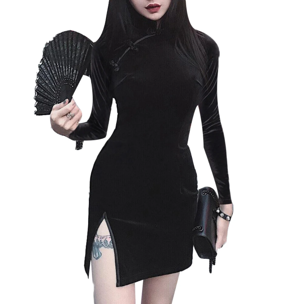 Женское бархатное платье-Ципао с короткимдлинным рукавом