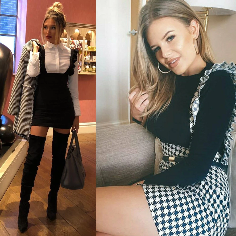 S-XL женское элегантное платье-комбинезон для проверки собачий зуб ...