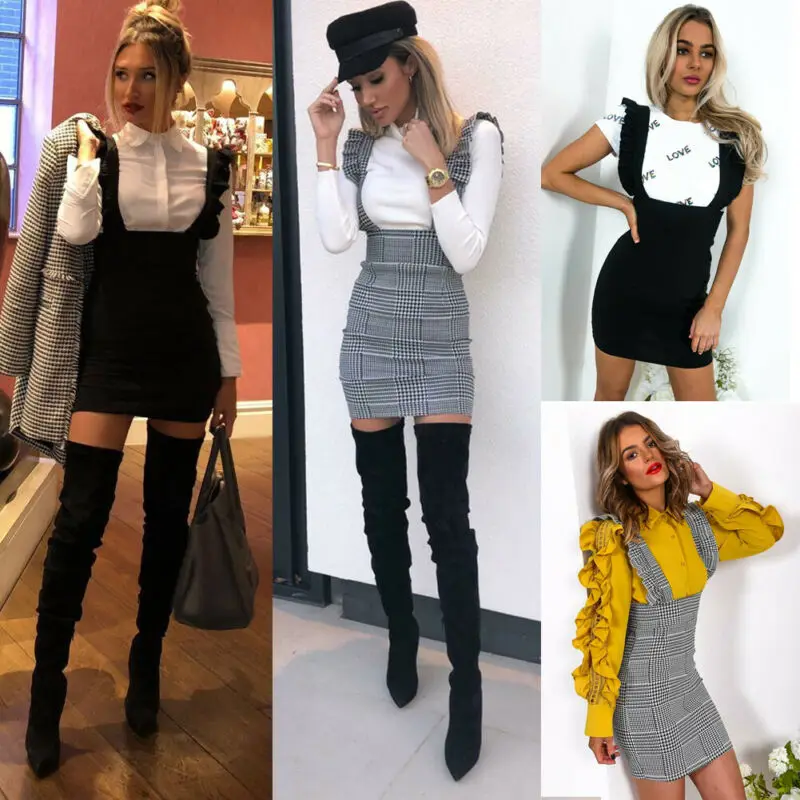 Модное женское платье с оборками в клетку, облегающее платье с высокой талией для вечерние Ринок, праздничное повседневное облегающее платье, 2020