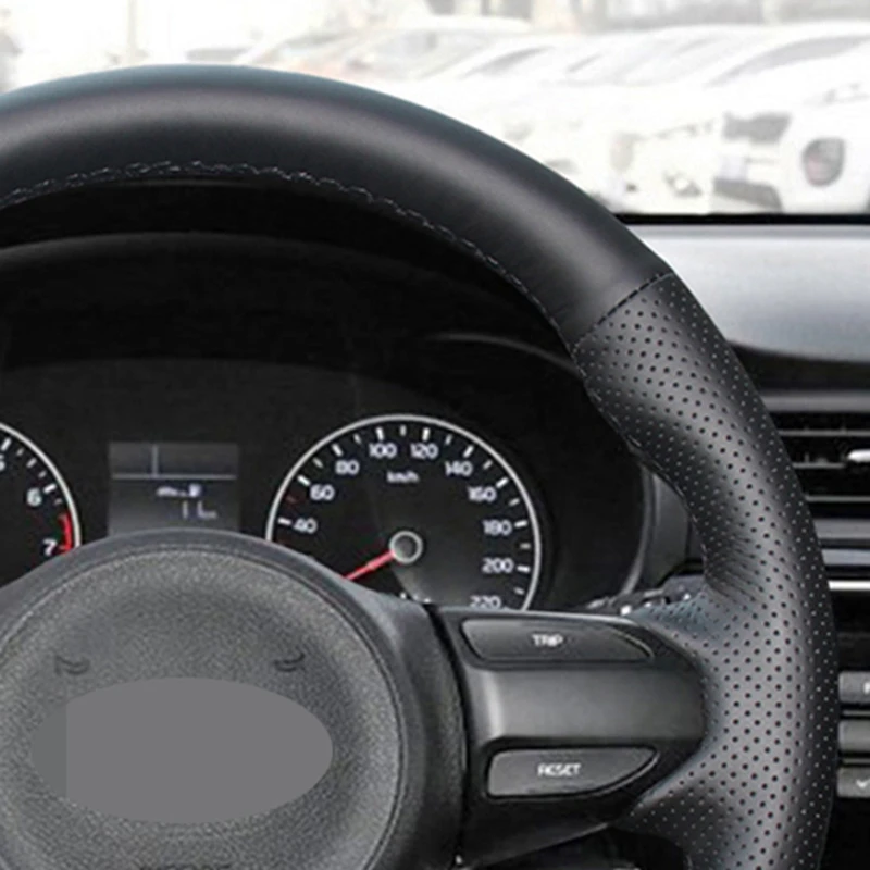 DIY черный PU искусственная кожа обернуть Ручное шитье чехол рулево...
