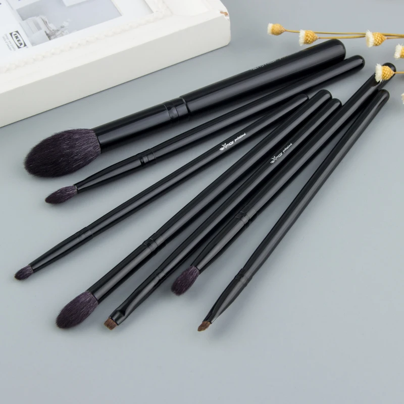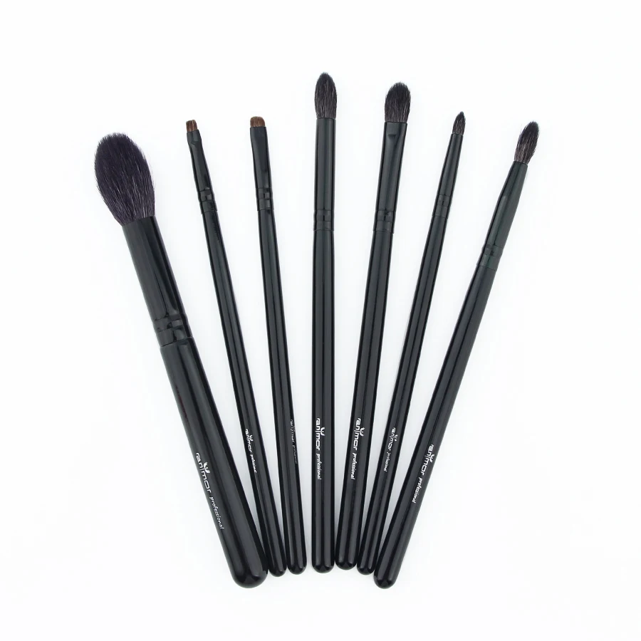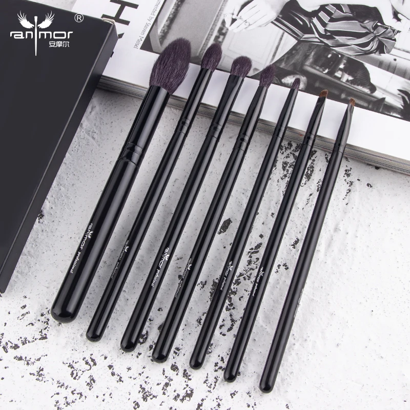 Кисть Anmor из набор кисточек для макияжа козьей шерсти, с деревянной ручкой, для макияжа, теней для век, растушевки, хайлайтера, 7 шт.