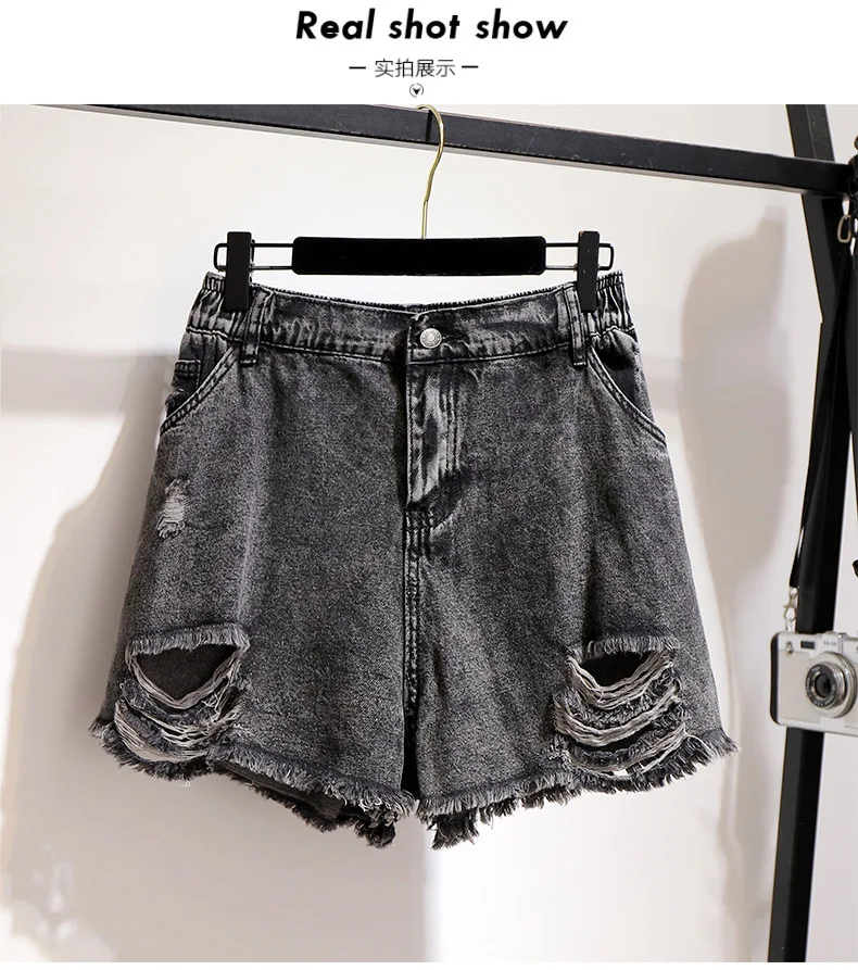 Женские летние джинсовые шорты, черные повседневные большие джинсовые шорты с бахромой, размеры до 6XL, 150 кг