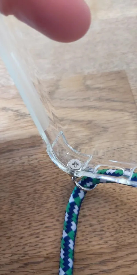 Суперудобная вещь - этот чехол на шнуре. Длина шнура регулируется, сам шнур мягкий и не толстый. Крепление колец, сквозь которые продет шнур, хорошо видно на фото. Выглядит надёжно. Телефон сидит в чехле плотно. Телефон не потеряется! Рекомендую к покупке!
