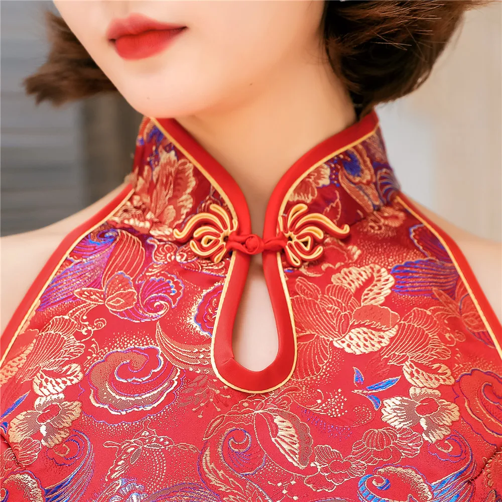 Женское атласное платье больших размеров 3XL, красное, традиционное, летнее, новое, китайское, Vestidso, без рукавов, сексуальное, Chwongsam, мини, элегантное, Qipao