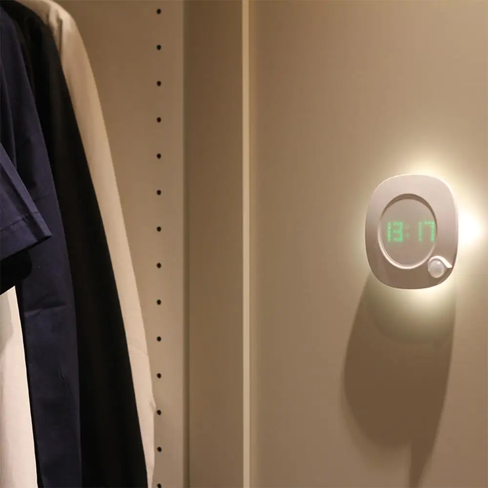 108 светодиодов автоматически отображает время, когда люди проходят. Ночник имеет встроенный независимый чип часов. Когда продукт имеет низкую мощность, часы могут работать с синтаксисом без частых настроек.