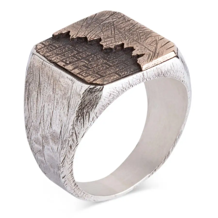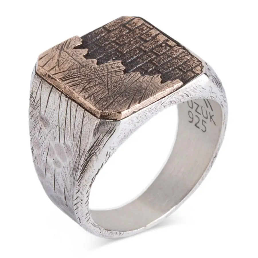 Верхние стороны кольца выполнены в бронзовом стиле на квадратной, реанимационном тематическом дизайне.