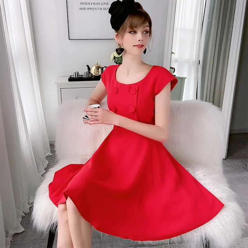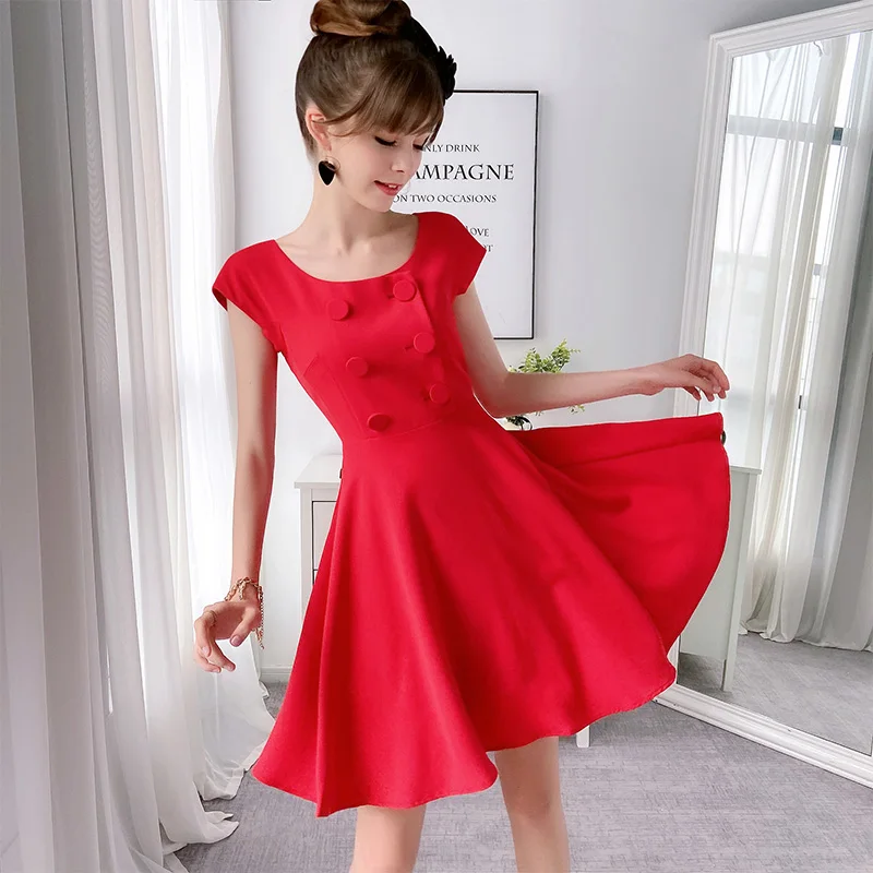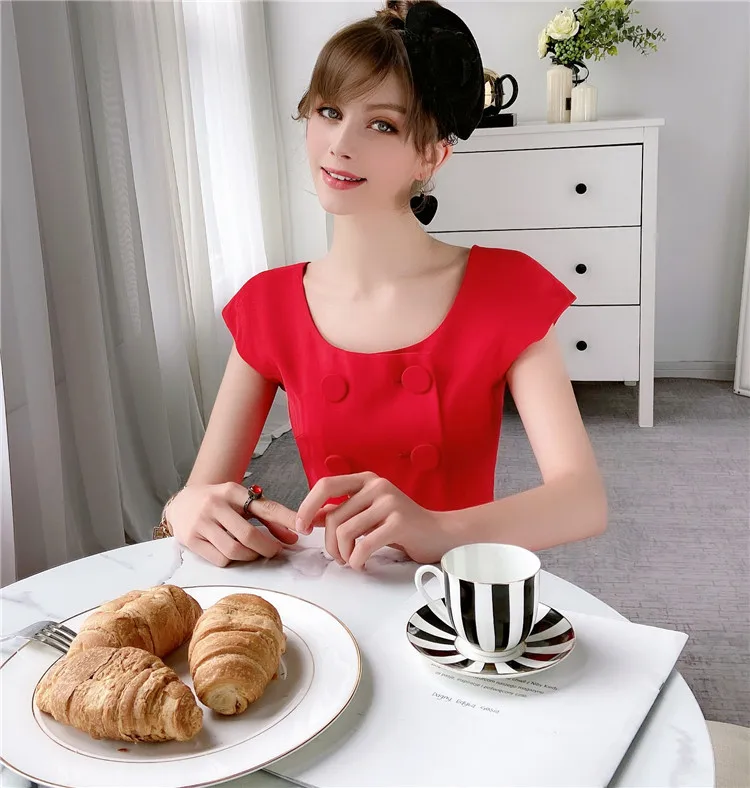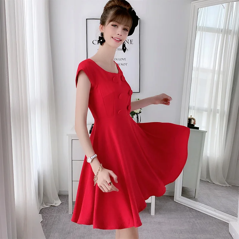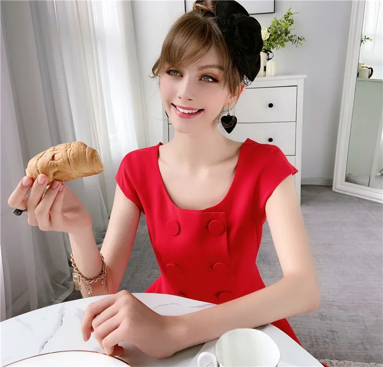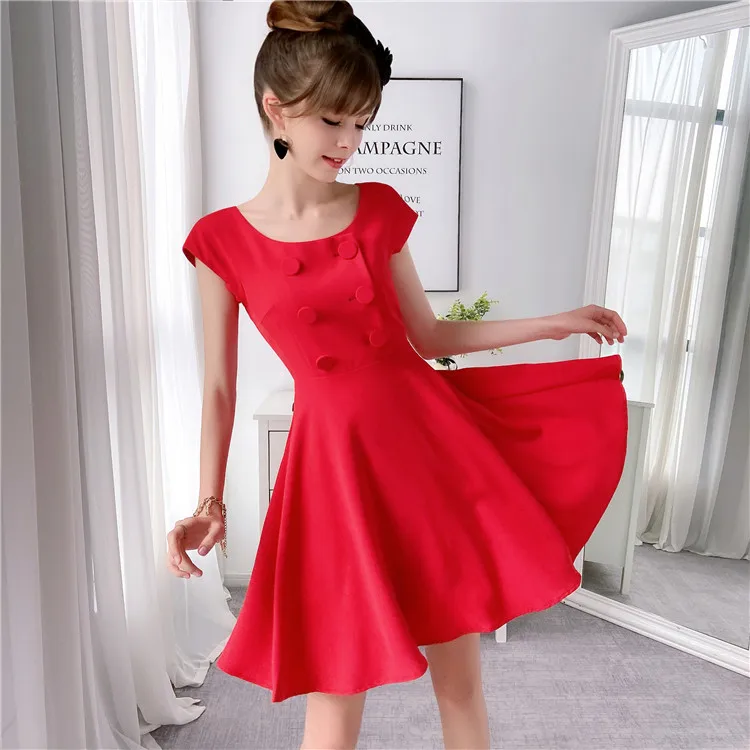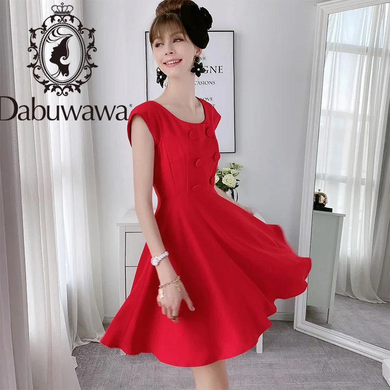 Dabuwawa летнее элегантное однотонное платье для женщин, двубортное, с круглым вырезом, без рукавов, облегающие и расклешенные вечерние платья для офисных леди D18BDR245