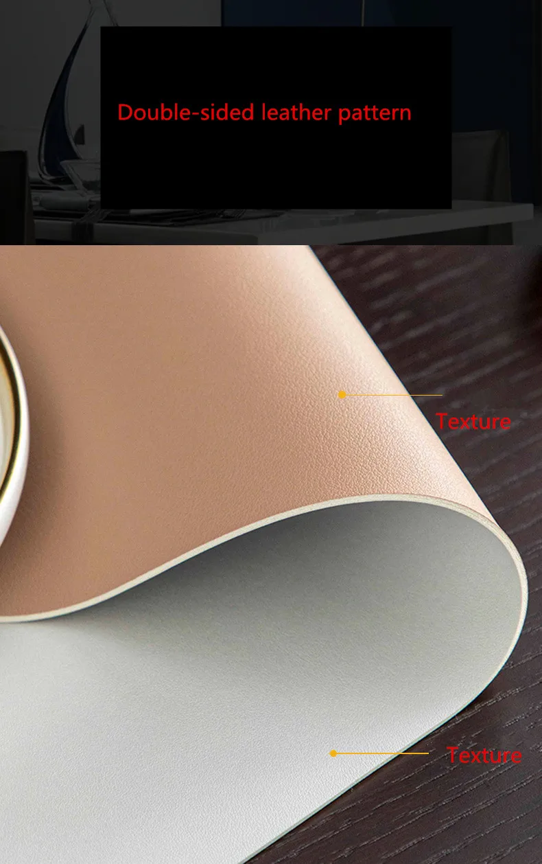 1. Из искусственной кожи материал 2. Водонепроницаемый и маслостойкий 3. Доступны с обеих сторон (два цвета) 4. Термостойкий 5. Износостойкий 6. Легко чистить 7.Thickness-2mm, подходит для рабочего стола