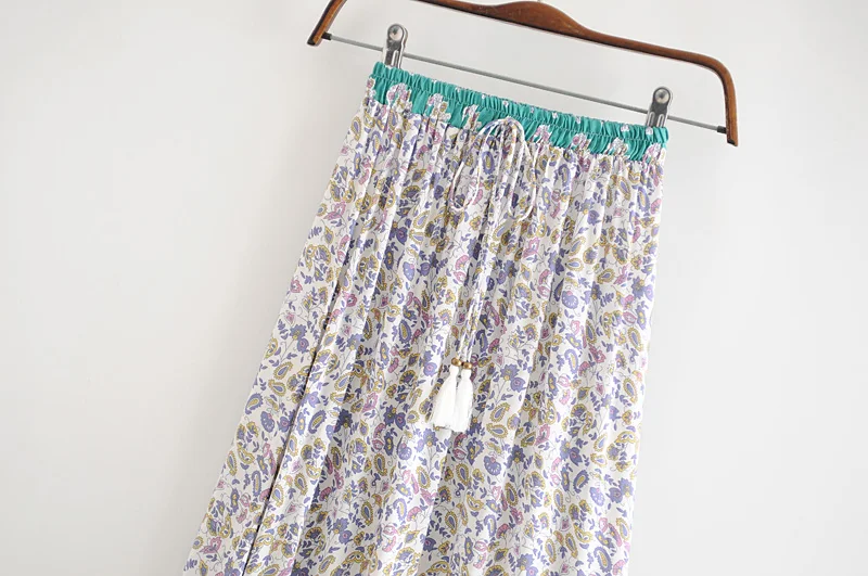 Винтажная шикарная модная женская пляжная юбка в стиле хиппи с цветочным принтом юбка макси А-силуэта с высокой талией в стиле бохо женские юбки