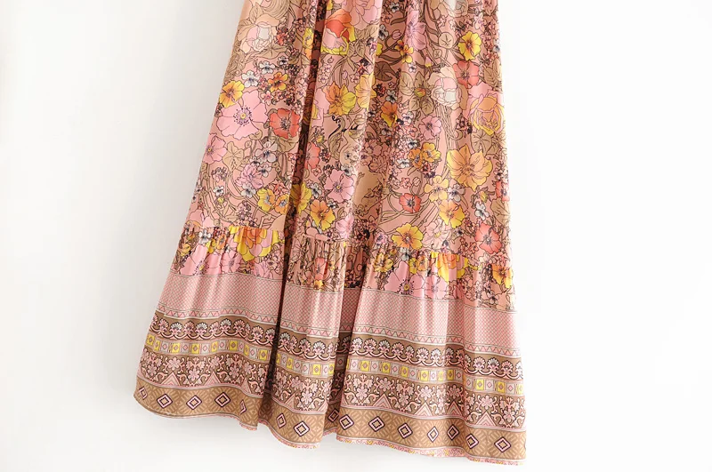 Платье в стиле бохо из вискозы и хлопка, розовое Макси-платье с цве...