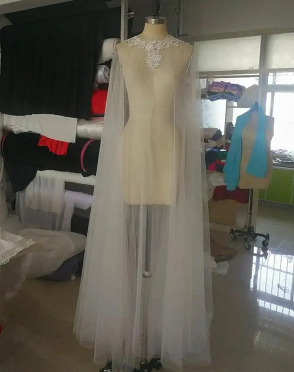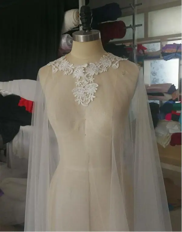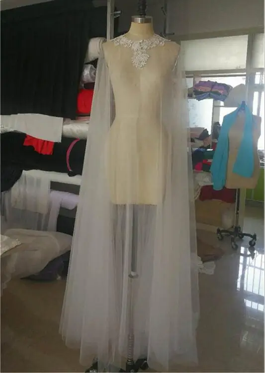 Свадебная накидка с аппликацией, длинный тюлевый Свадебный жакет в пол, Белыйцвет слоновой кости, свадебные аксессуары для невесты