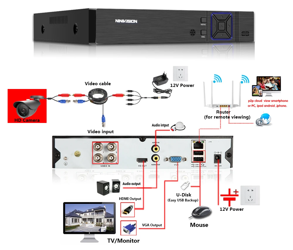 Простая настройка, всего 4 шага для просмотра на мобильный телефон,Просмотр видео в режиме реального времени в системе из любого места и в любое время с помощью смартфона, стола или ПК с передовой технологией P2P, вы можете получить удаленный доступ к вашей системе в течение нескольких минут или меньше, нет необходимости в переадресации, удаленный доступ никогда не был таким простым!