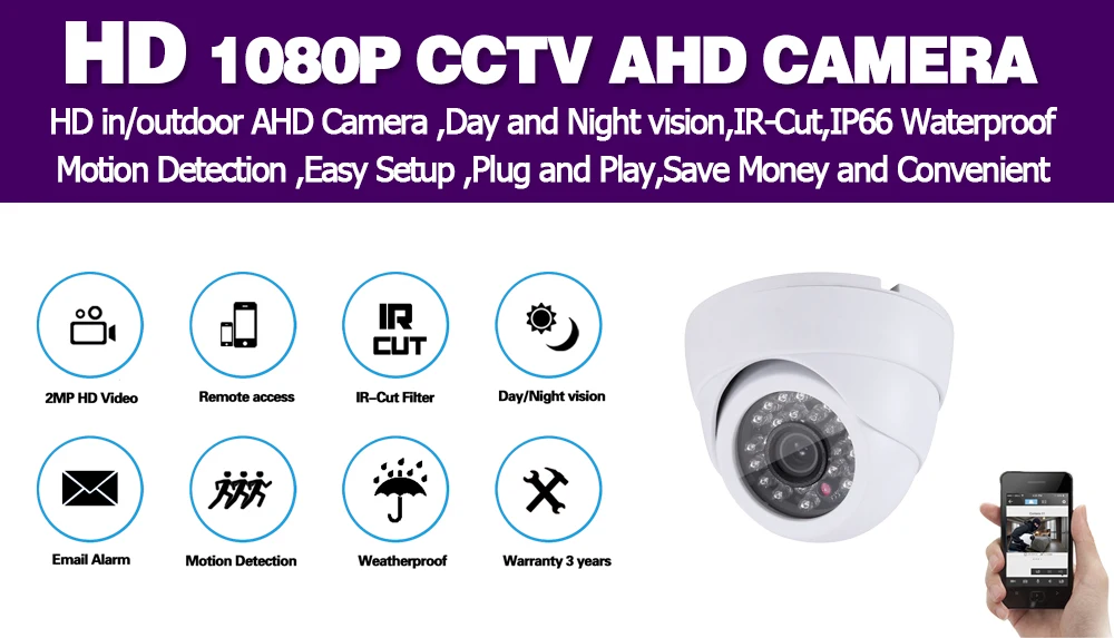 Примечание:Это AHD 1080P камера, работает с использованием 5MP AHD DVR или 4MP AHD DVR или "AHD-H 1080P System" или "AHD 1080N System", если нет, камера 1080p не работает! Не может использовать "AHD 720P DVR, AHD-M 720P DVR" AHD DVR или общий DVR, 1080P AHD камера не работает!