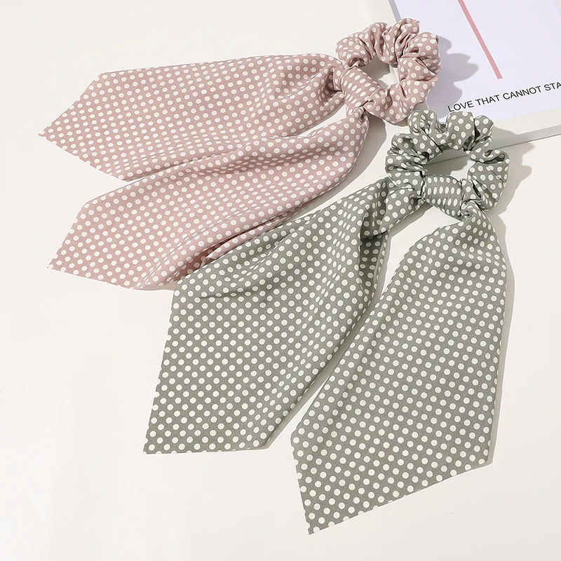 Женский летний шарф для хвоста, эластичная резинка для волос для женщин, резинки для волос с бантом, резинки для волос, ленты для волос с принтом в горошек