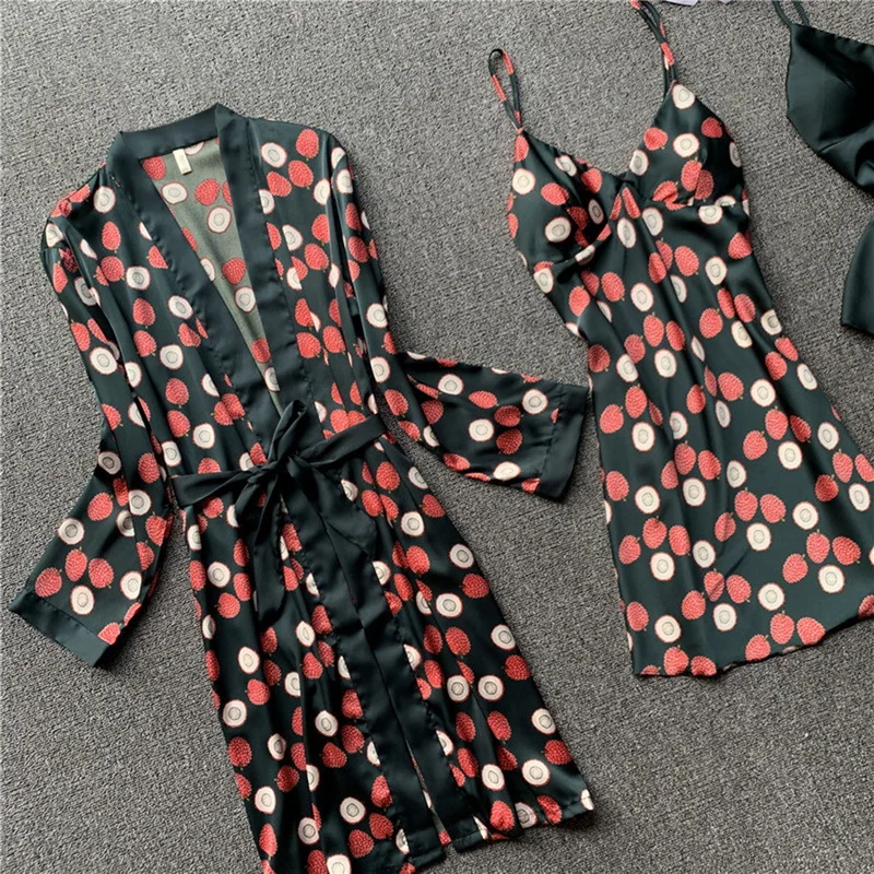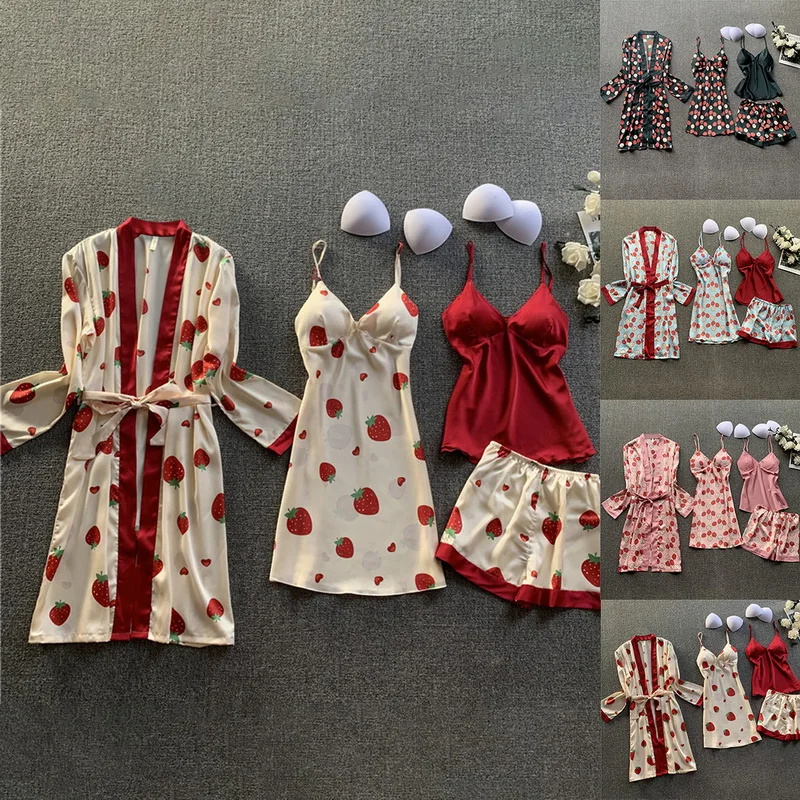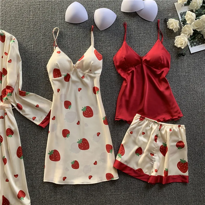 Комплект пижамный Женский, из 4 предметов, атласный, с подкладками для груди