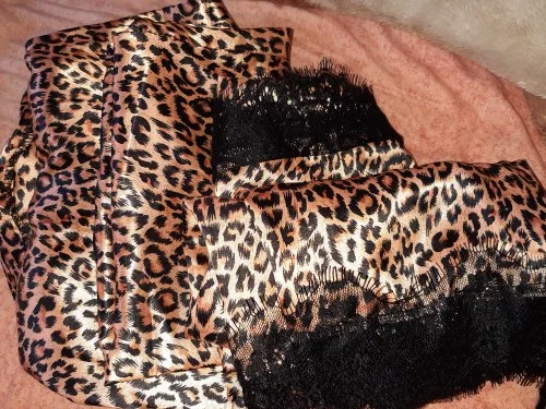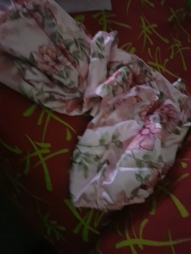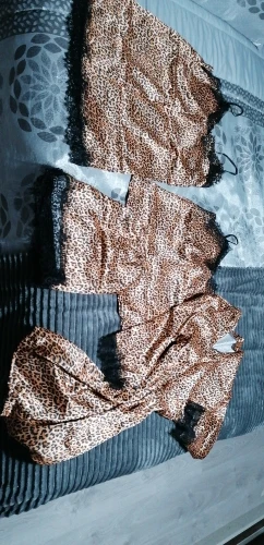 Крой комплекта не соответствует картинке, или выкинуть или перешить. Но с такой тканью ни то не другое. Хотя ткань блестит. В общем решать вам. Если возможен возврат, я бы вернула. Это жесть. Даже пояс не вывернули, швы наружу. В общем, неудачная покупка. Продавец подколол.
