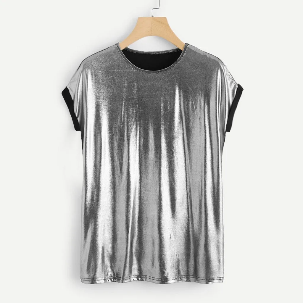 Модная женская Серебристая футболка с коротким рукавом и круглым вырезом