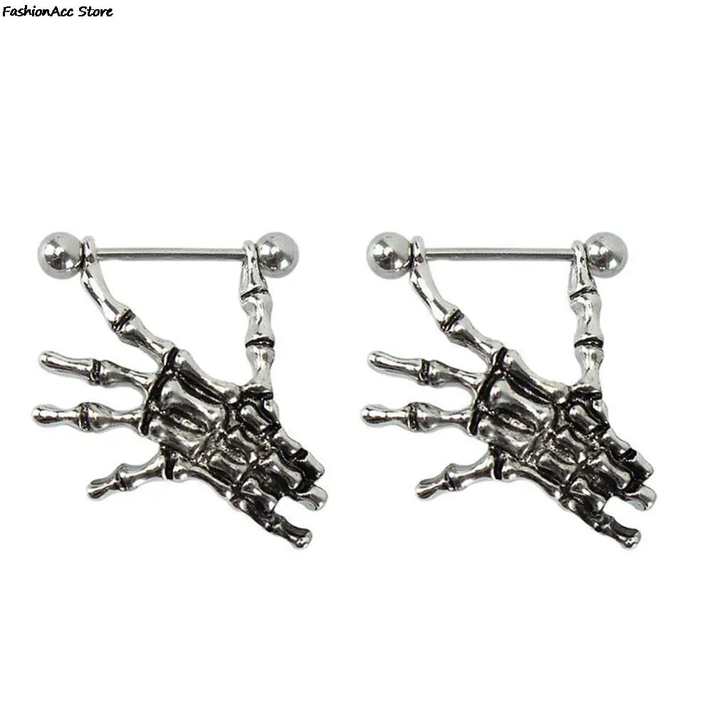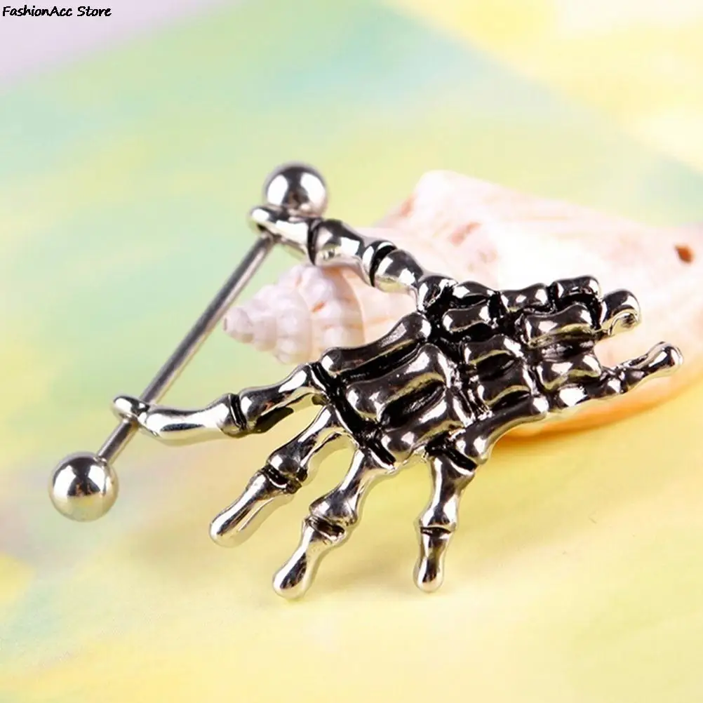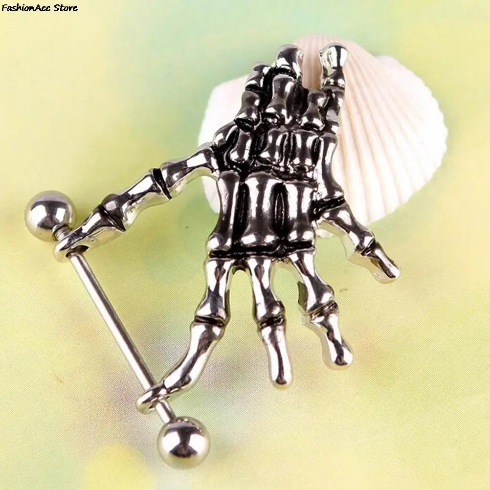 1 шт Панк кнопка с изображением скелета кольца для женщин ювелирные изделия Пирсинг живота и тела череп рука-щит ниппель Бар пупка живота
