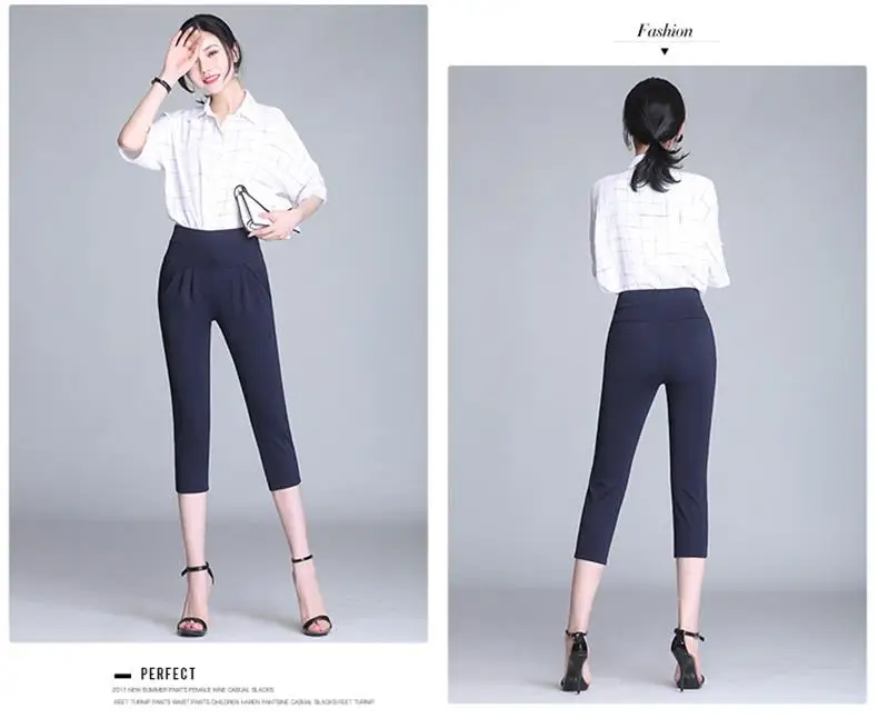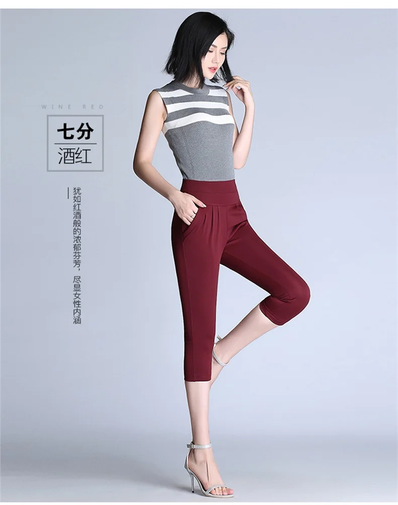 Брюки-султанки женские с завышенной талией, винтажные повседневные Стрейчевые прямые брюки, модные бриджи в Корейском стиле, лето