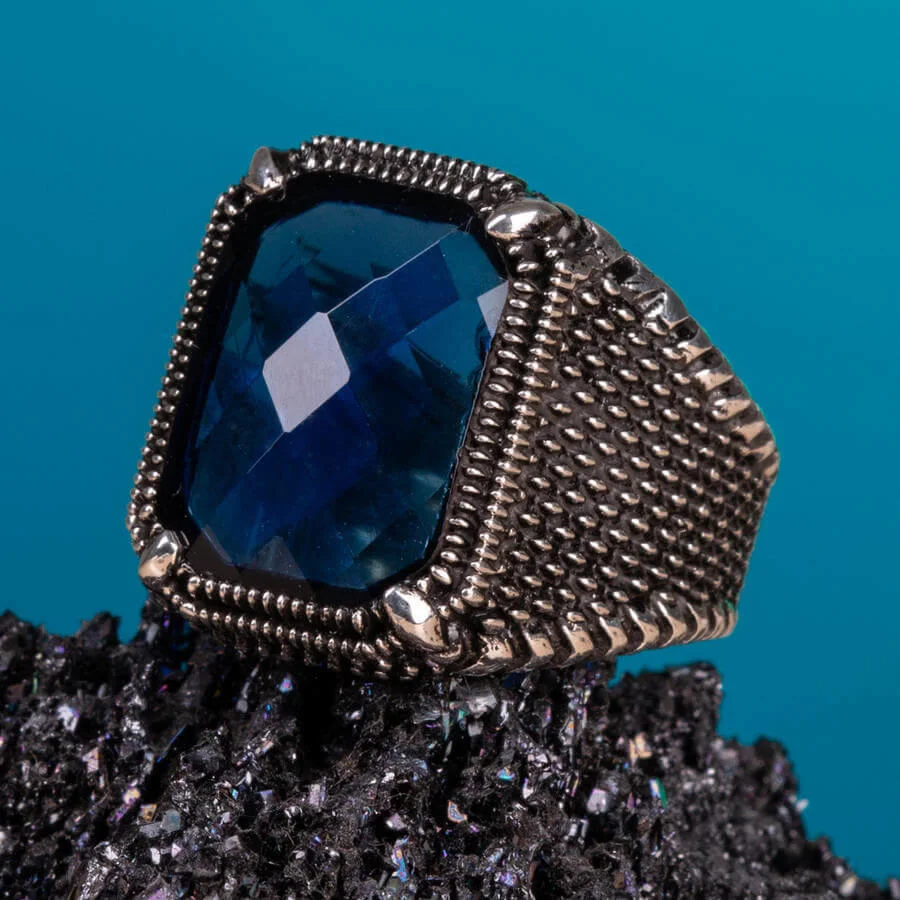 Мужское кольцо из серебра 925 пробы с зеленым и синим Цирконом