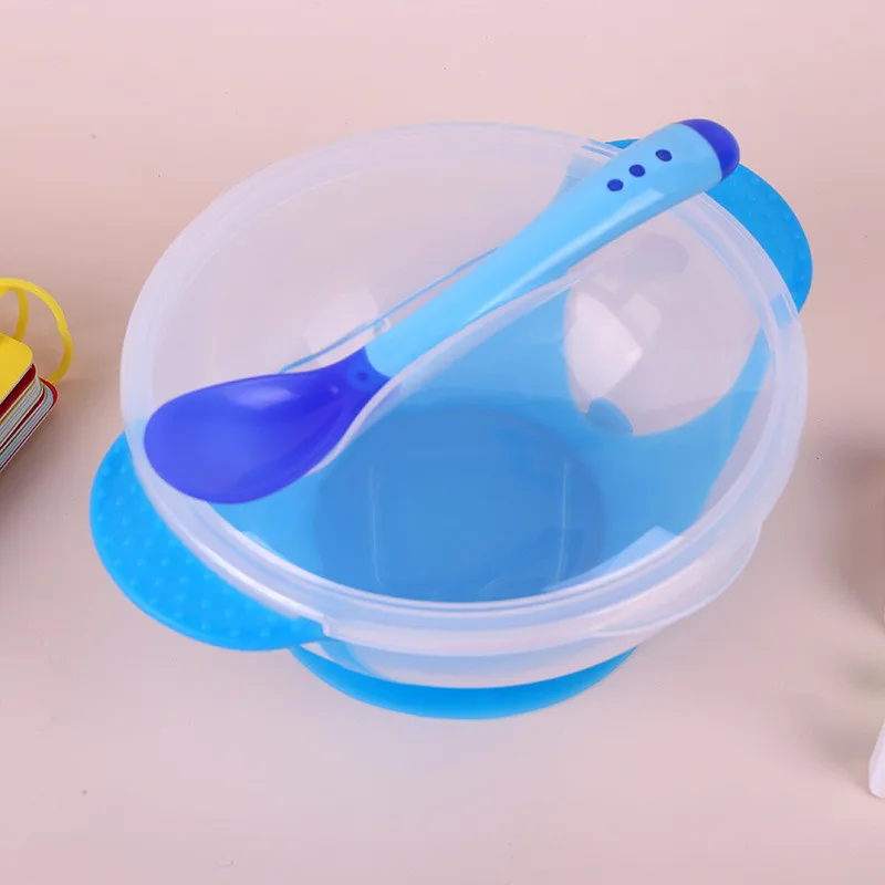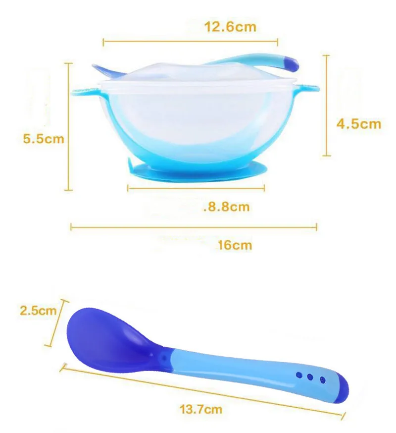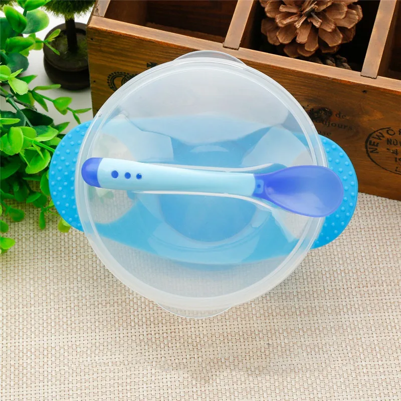 3 шт.компл. Детские Обучающие блюда с присоской, набор детской безопасной посуды, чаша с датчиком температуры, ложка, вилка, посуда