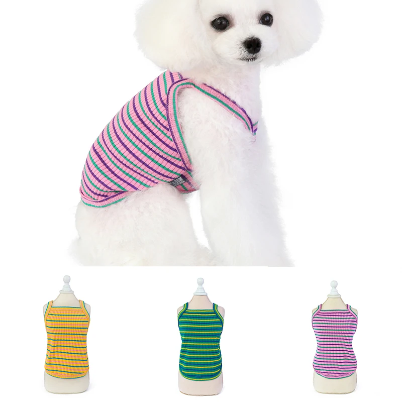Классические милые полосатые цветные товары для домашних животных, модная кофта, летние жилеты для собак, размер детской одежды, весенне-летняя хлопковая одежда для щенков