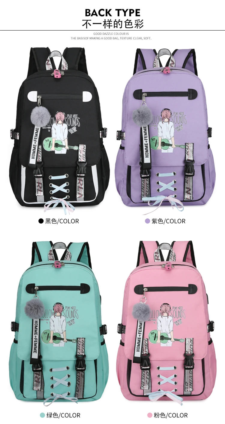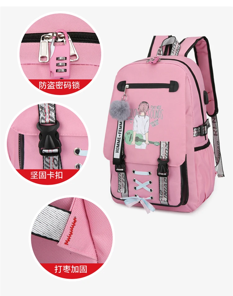 Большой Школьный рюкзак для девочек-подростков, с Usb-разъемом и замком, прочный, дышащий, с принтом, однотонный, школьный ранец на молнии