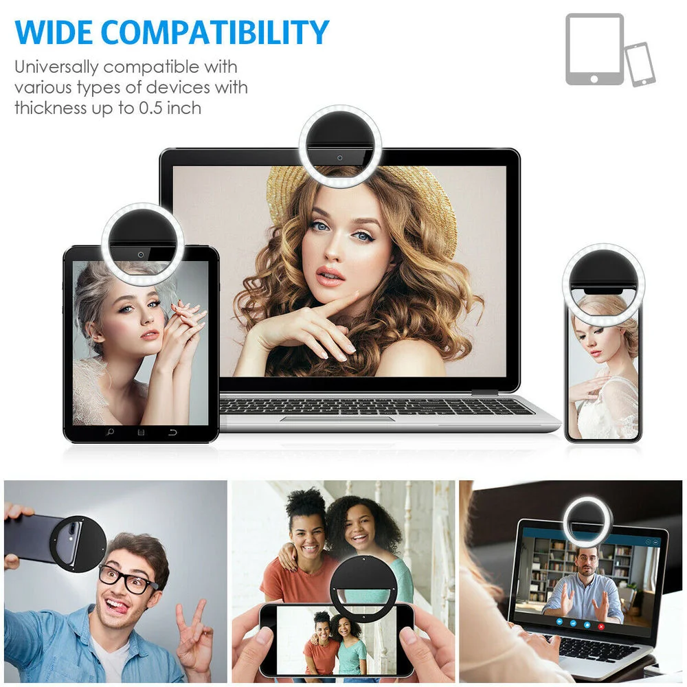 Кольцевой светодиодный светильник для селфи, портативная лампа для селфи мобильный телефон 28 светодиодный S, 3 уровня освещения, светящееся кольцо с зажимом для всех мобильных телефонов