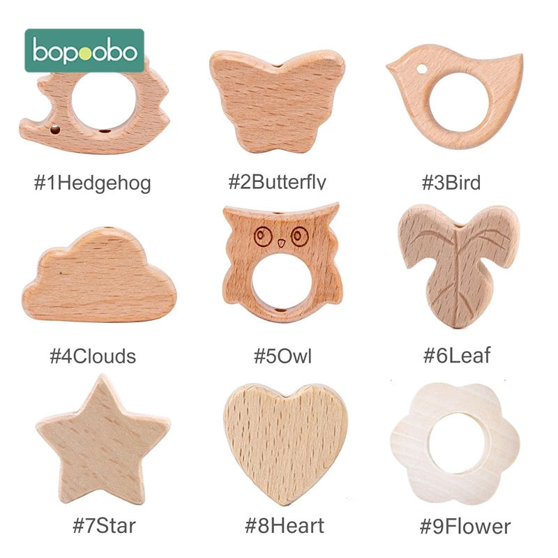 Bopoobo 10 шт., деревянные бусины, жевательный прорезыватель, Буковые бусины в форме звездного цветка, сделай сам, BPA бесплатно, деревянные прорезыватели, Детские бусины