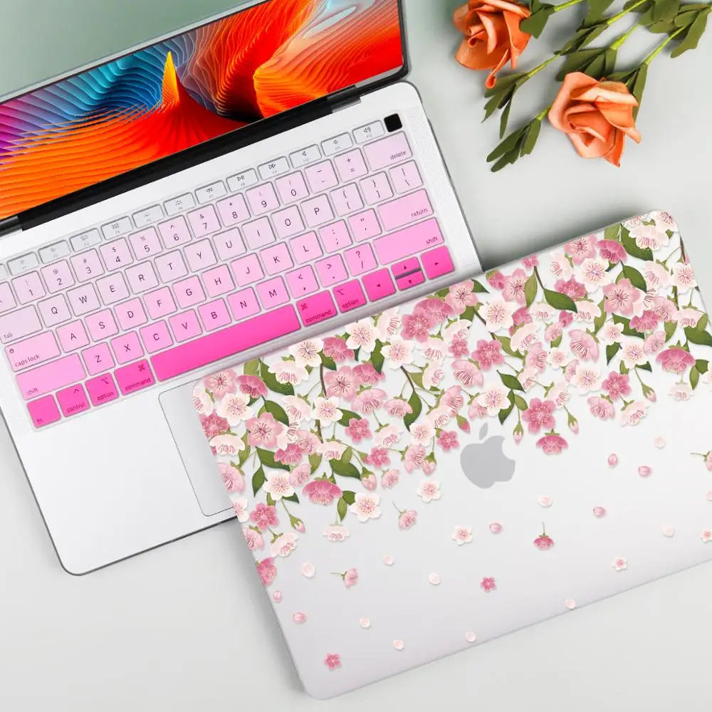 Чехол для ноутбука MacBook Air, жесткий пластиковый чехол с цветами...