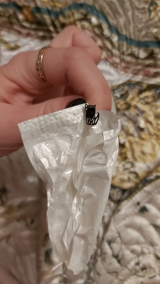 Очень милый дизайн, приятный черный металлический материал. Полностью соответствует описанию. Было бы лучше, если бы задняя часть серьги была сделана из силикона. Довольно быстрая доставка.