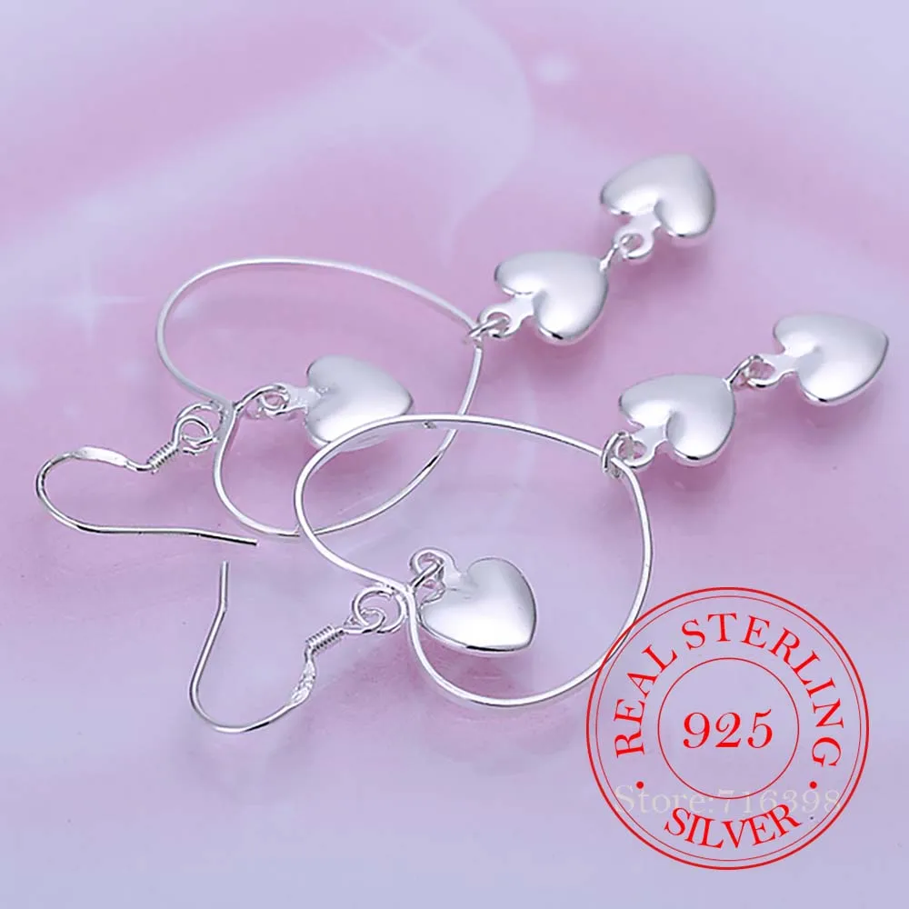Серьги-подвески в Корейском стиле женские, Винтажные висячие ювелирные украшения из стерлингового серебра 925 пробы с 3 твердыми сердечками для помолвки и свадьбы, 2020