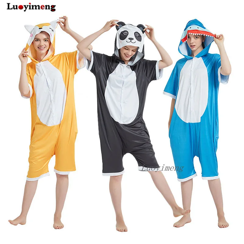 Пижама-кигуруми Женскаямужская с капюшоном, комбинезон с коротким р...