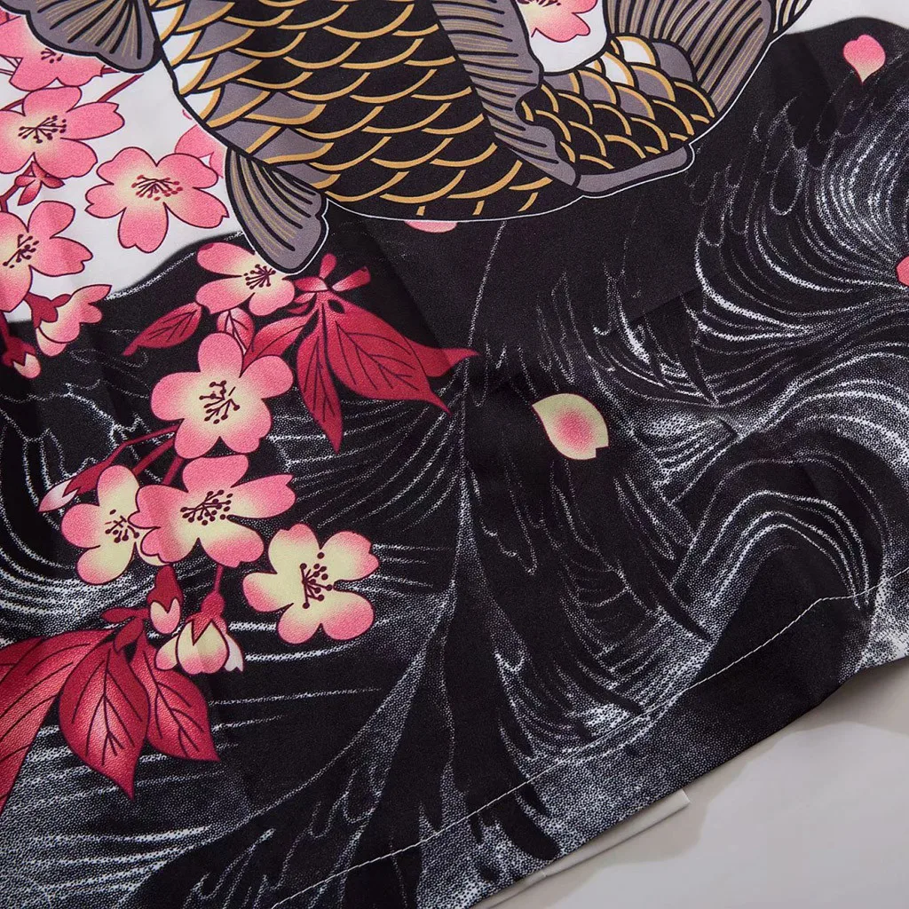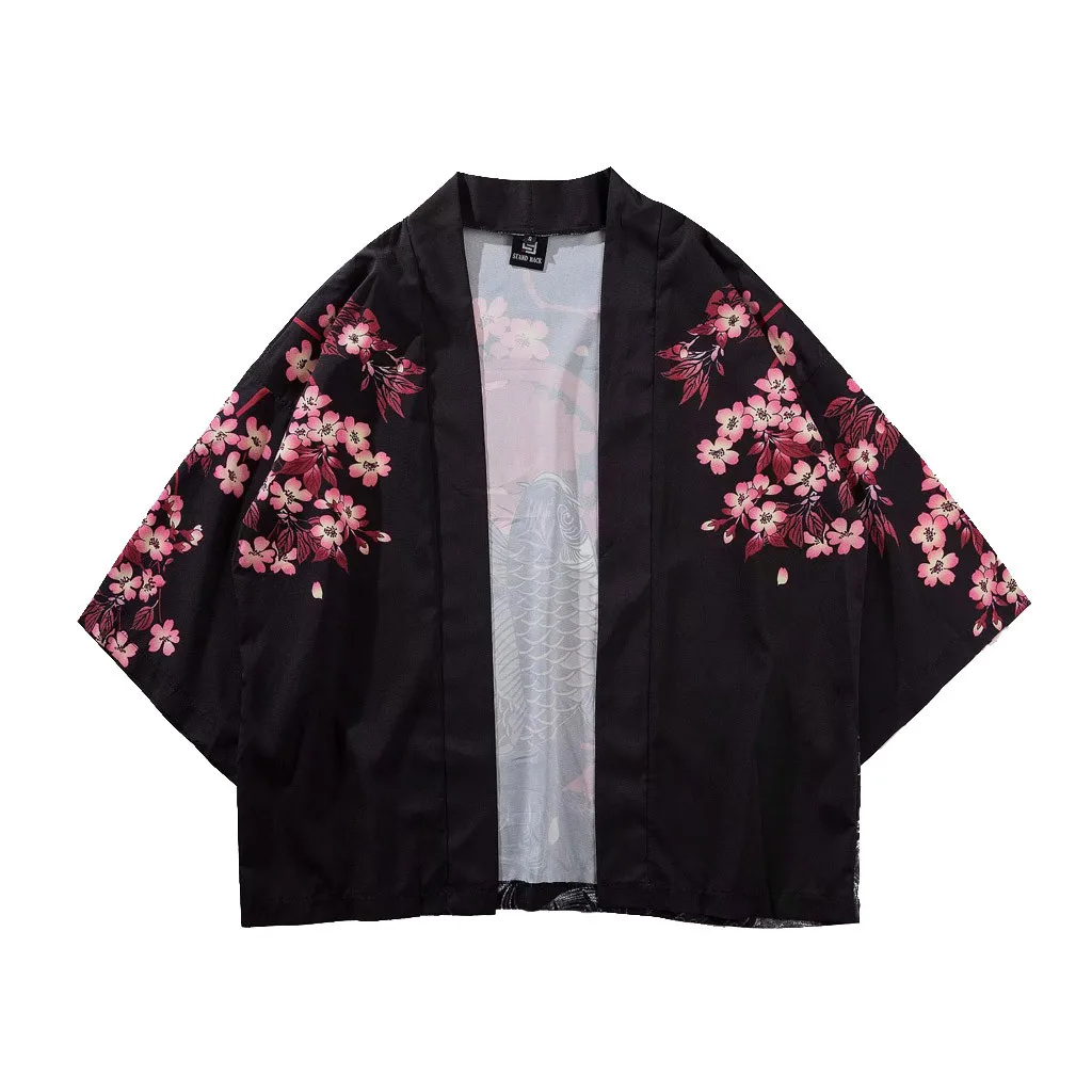 Черно-белое кимоно в японском стиле с рисунком большой рыбы, летнее японское пятиконечное мужское и женское кимоно, кимоно с рукавами