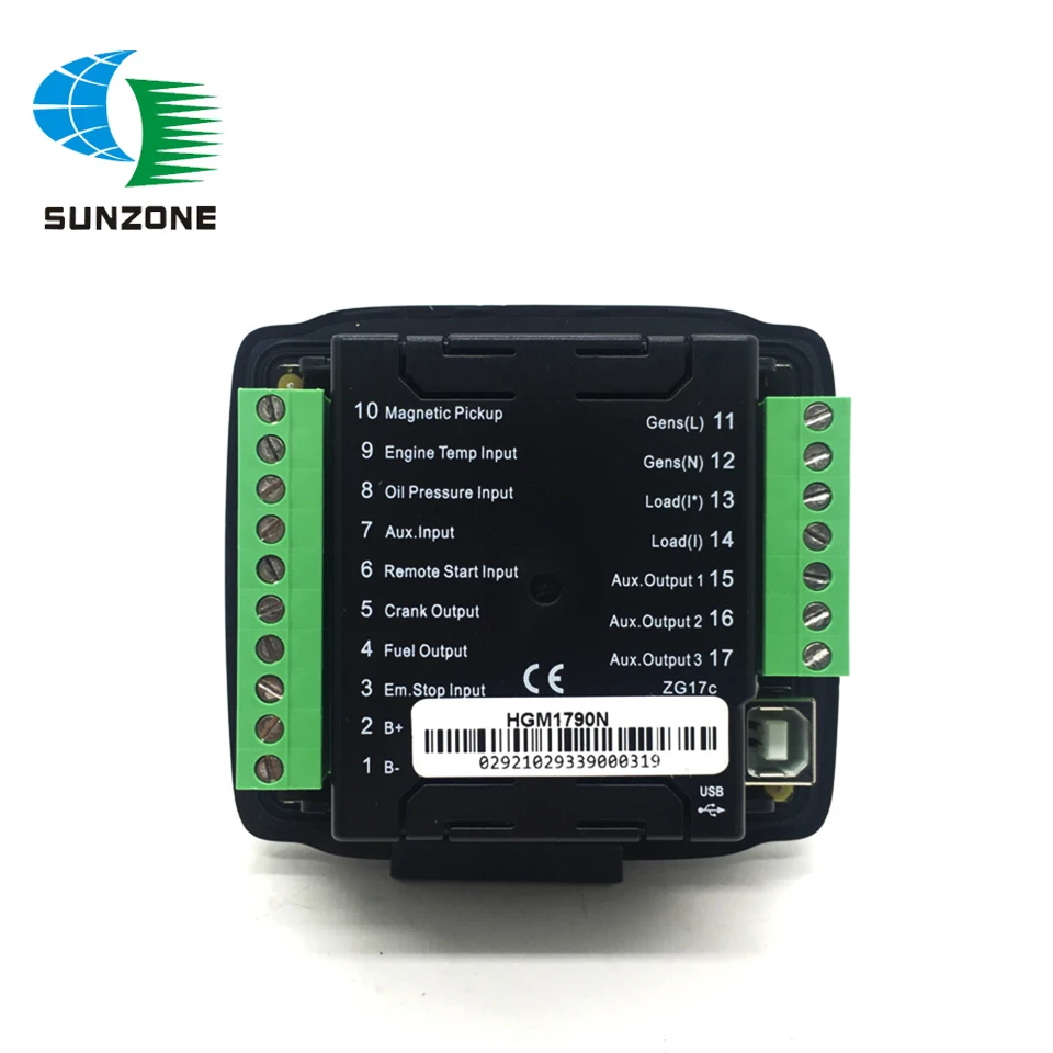 Контроллер генератора HGM1790N подходит для автоматизации одного блока и контроля (также используется для сутенерного блока). Он может быть запущен и остановлен вручную или с помощью удаленного запуска/остановки сигналов. Контроллер HGM1790N может контролировать и защищать работу генератора путем сбора и анализа данных генератора, таких как генерирование напряжения, тока, температуры воды, давления масла и так далее, И графический ЖК-монитор на передней панели отображает условия неисправности и обеспечивает эффективные сигналы тревоги, чтобы сделать обслуживание как можно скорее. Кроме того, пороговое значение параметра и значение задержки можно отрегулировать через переднюю панель или порт USB (связаться с программным обеспечением ПК).