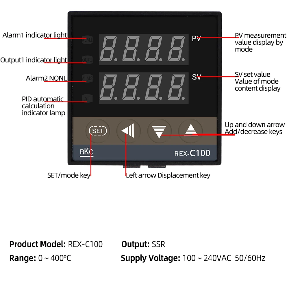 Модель продукта: REX-C100FK02-M(V)* AN (мы продаем как выход SSR, так и релейный выход по этой ссылке)