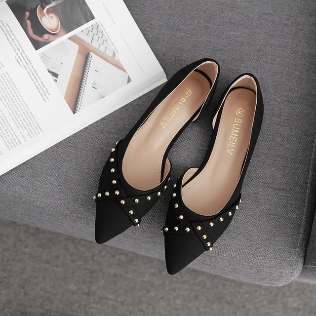 Летняя модная обувь, женские балетки на плоской подошве, женские мягкие слипоны, туфли с заклепками и острым носком, женская обувь