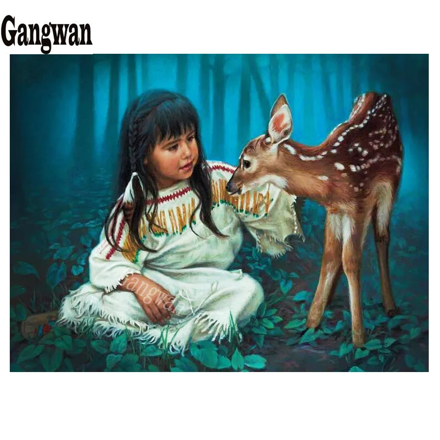 Вышивка крестиком, алмазная живопись, индейская девушка, полная Алм...