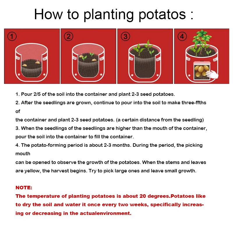 С боковым окошком для легкого сбора вашего картофеля, и двойные ручки наших посадочных мешков могут принести вам много удобства, когда вы его перемещаете.