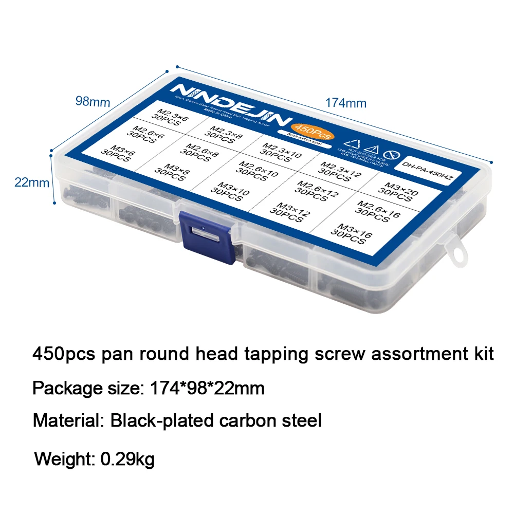 Набор саморезов с круглой головкой и черным покрытием, 450 шт.компл., M2.3, M2.6, M3, углеродистая сталь, винты для ноутбука, компьютера, набор винтов Phillips