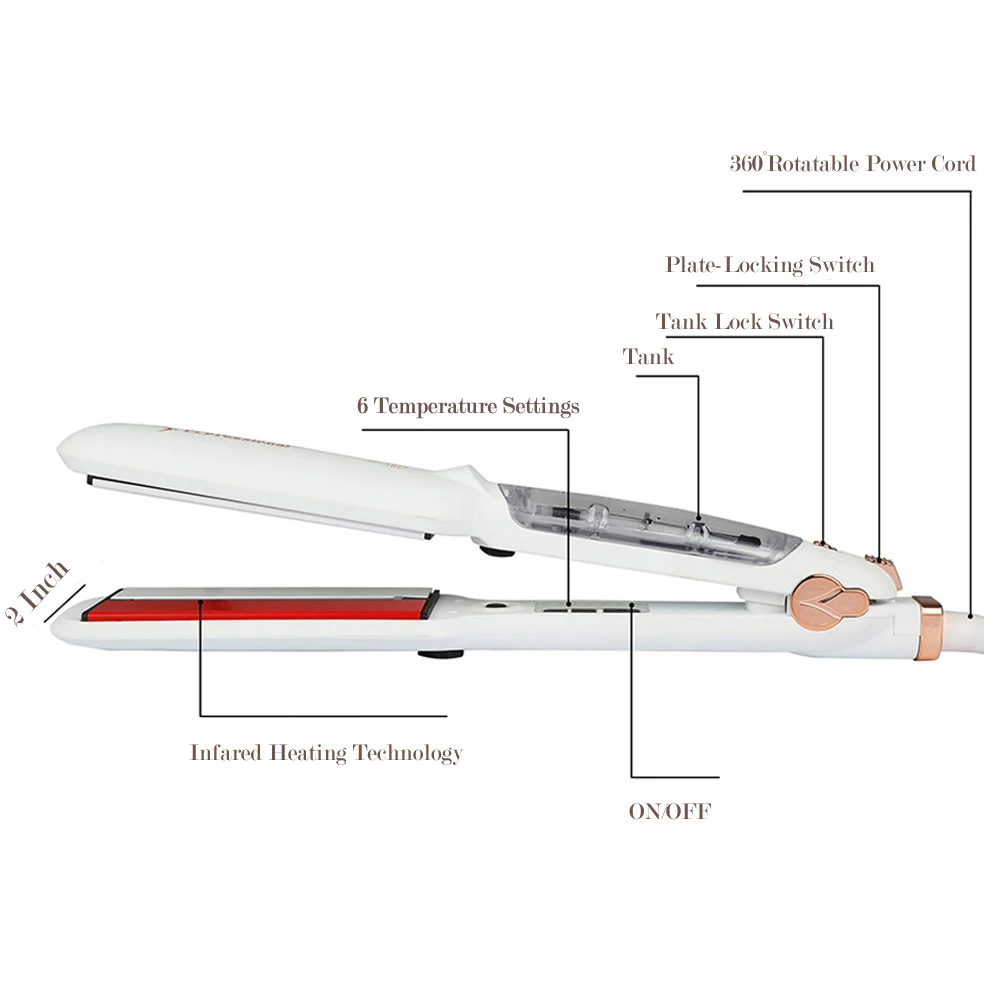 Профессиональная машинка для стрижки волос выпрямитель Керамика Vapor инфракрасный обогрев Утюг стимпод, 2 дюйма утюжок для волос