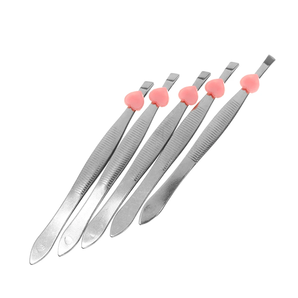 Профессиональный пинцет из нержавеющей стали 5 шт.компл., щипчики для удаления волос бровей, инструмент для щипчиков, 8,7 см, серебристый