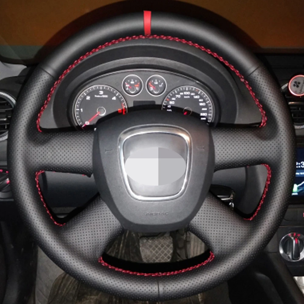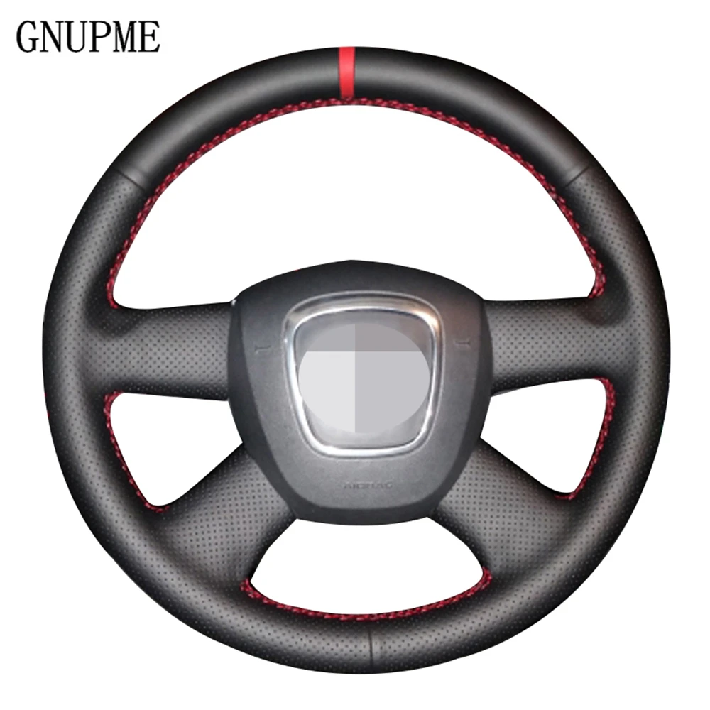 Черный чехол рулевого колеса автомобиля красный маркер для Audi старый A4 B7 B8 A6 C6 2004-2011 Q5 2008-2012 Q7 2005-2011 (нет)