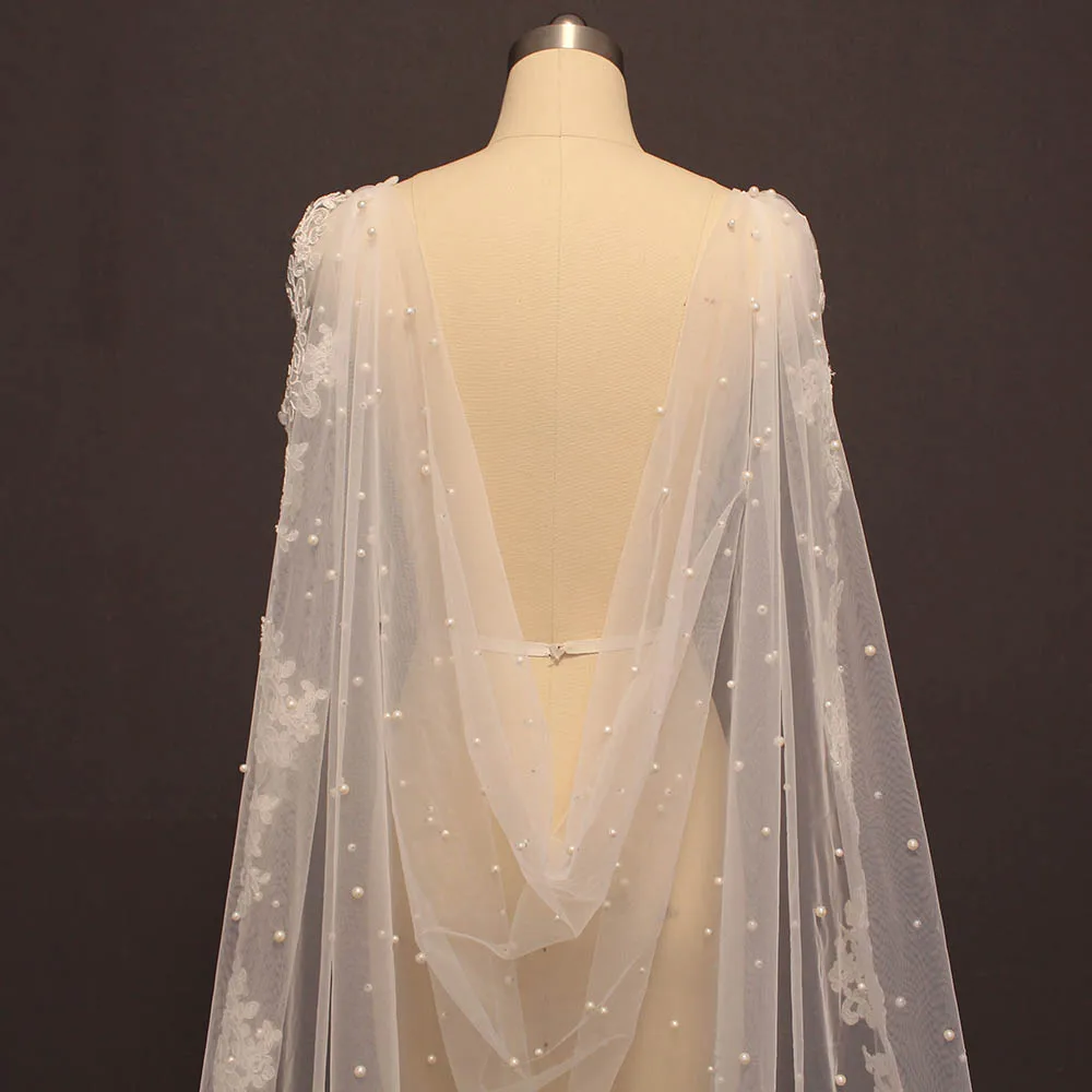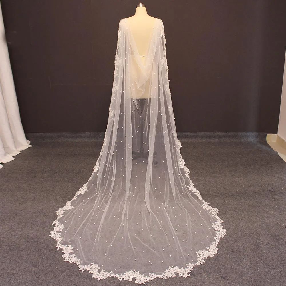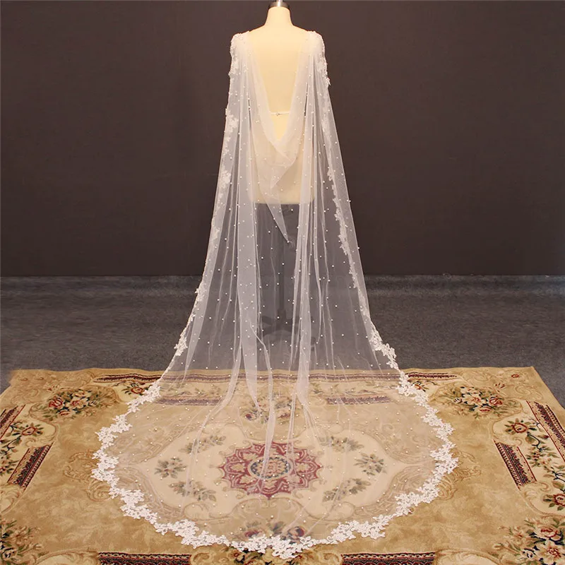 Свадебные накидки с жемчугом, длина 3 метра, Белыйцвет слоновой кос...
