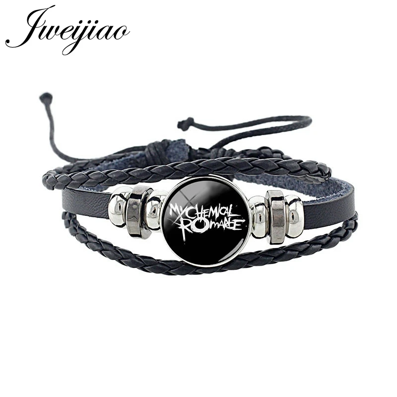 JWEIJIAO рок-группа My Chemical Romance черные кожаные регулируемые браслеты панк браслет 18 мм круглые стеклянные кнопки ювелирные изделия C465
