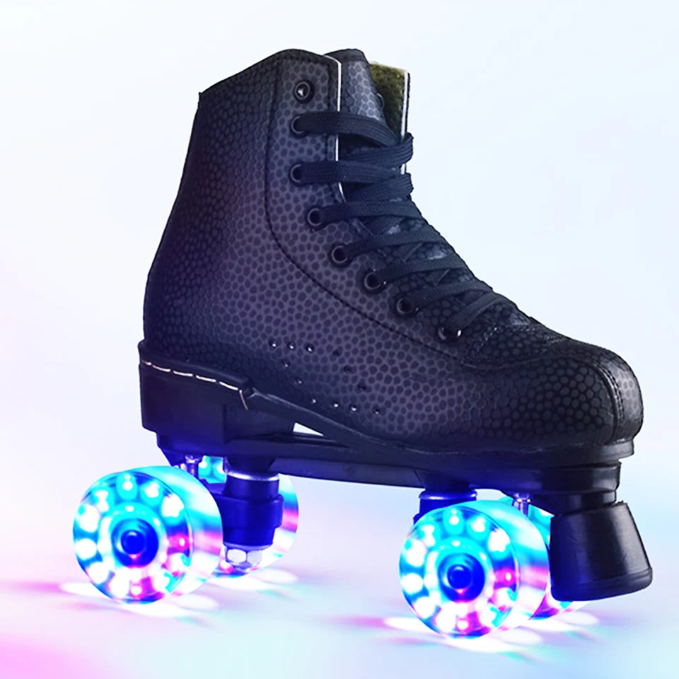 Коньки JK, для взрослых, из искусственной кожи, четырехколесные, двойные, с патиной, полиуретановые