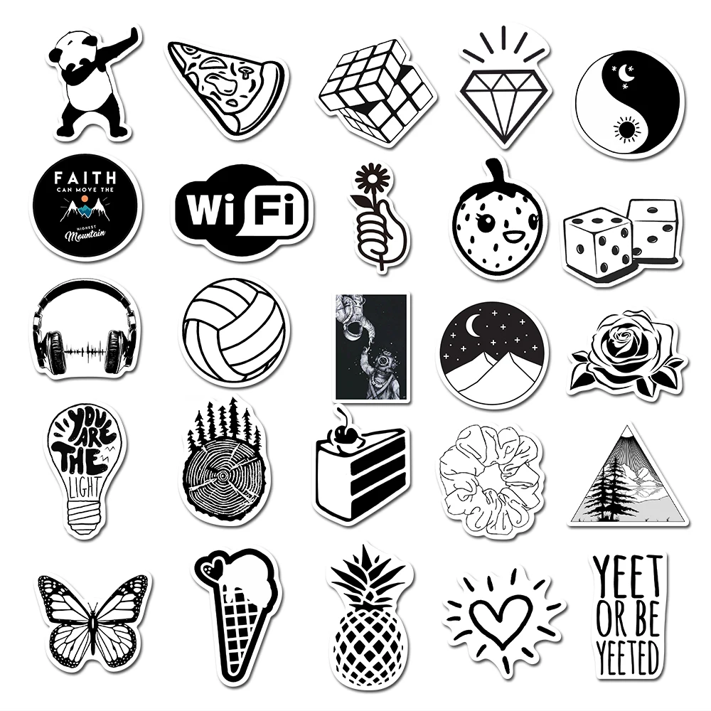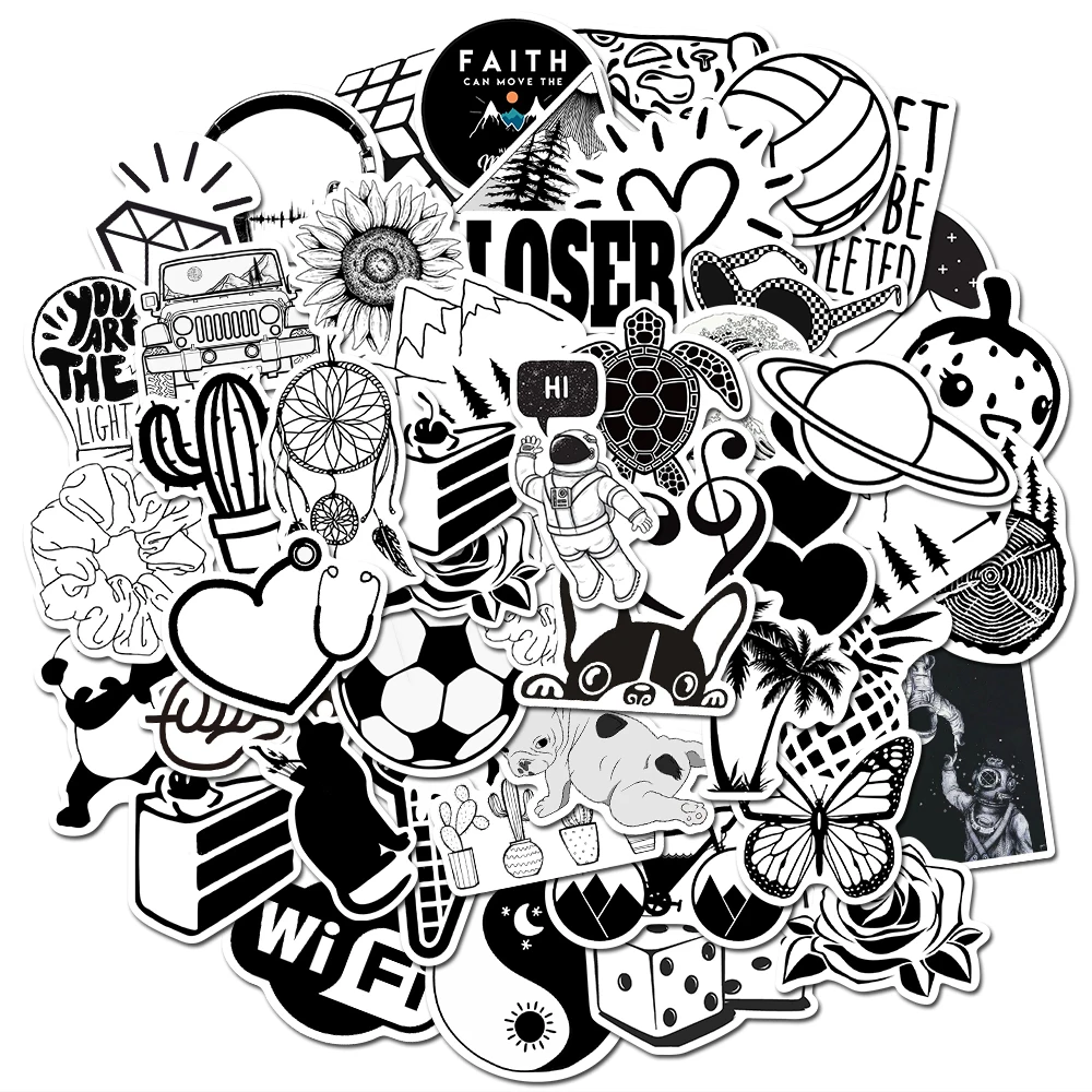 50 шт. черно-белая наклейка металлик s граффити наклейка для ноутбука чемодан автомобильный Стайлинг стена гитара крутая наклейка s Хэллоуин