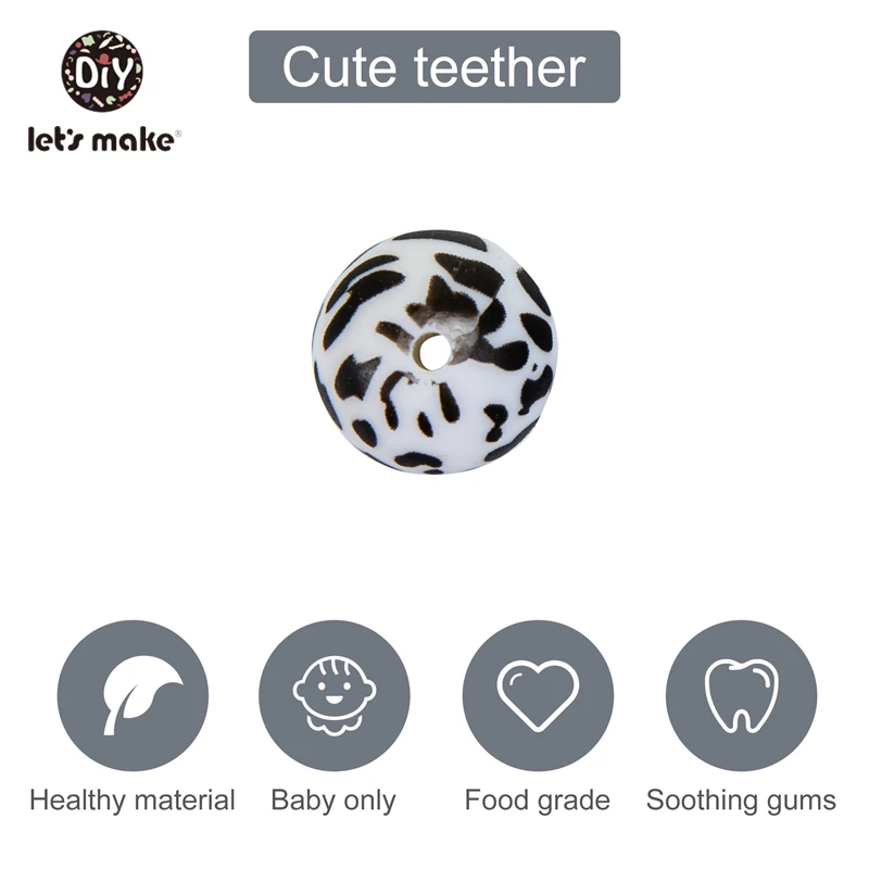 30 шт., силиконовые бусины для прорезывания зубов, 12 мм