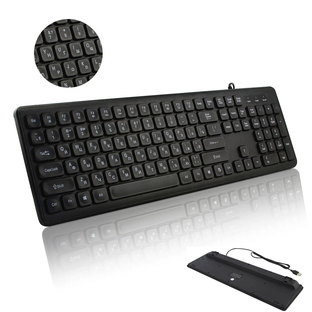 Проводная USB-клавиатура CHYI с русской и английской раскладкой, бесшумная клавиатура с 108 клавишами для ПК, ноутбука, эргономичная Водонепроницаемая клавиатура для компьютера