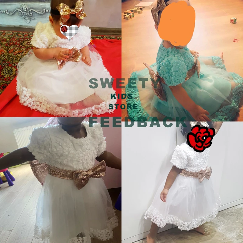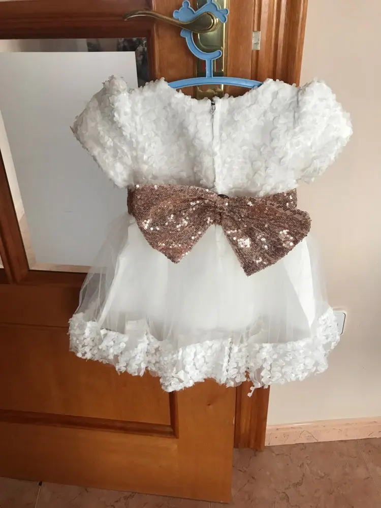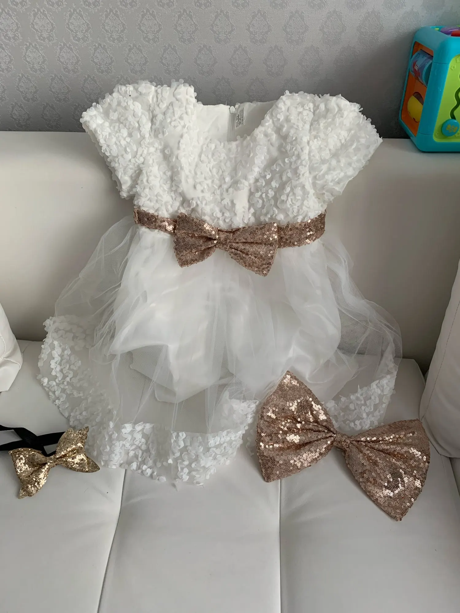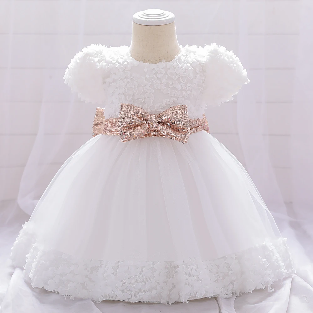 Платье с бантом и блестками для девочек, белое платье для крестин на первый день рождения
